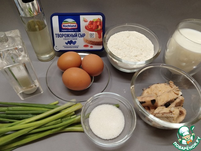 Ингредиенты для «Блины с зелёным луком и рыбной начинкой»: