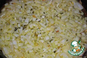 Лук нарезать кубиками и обжарить на оливковом масле до золотистого цвета.