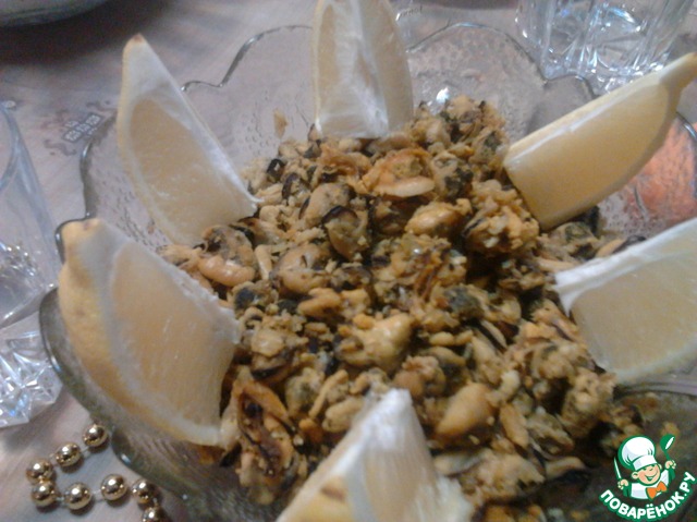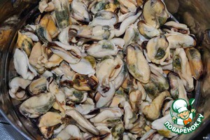 - Мидии (У меня были мороженые. Предварительно разморозить.) — 0,5 кг