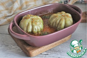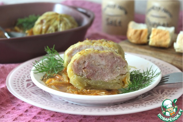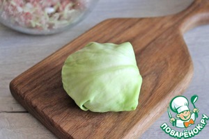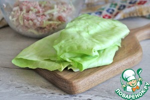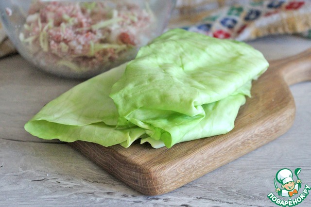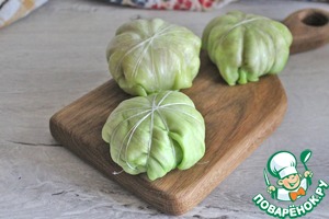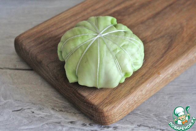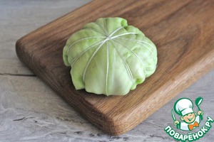 В этот раз у меня капуста была рыхлая, листья легко от нее отделялись, я их просто размягчила в микроволновке.