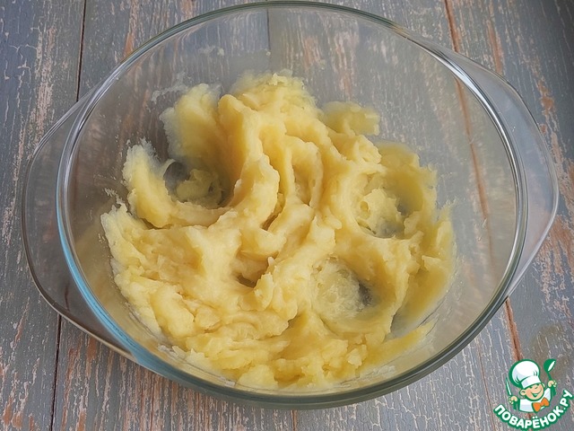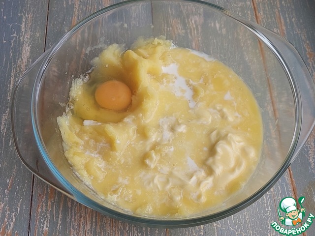Добавить в картофель яйцо, молоко и растопленное сливочное масло.