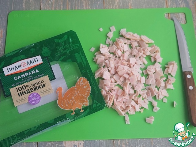 Ветчину ТМ Индилайт нарезать мелкими кусочками.