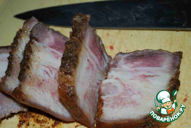 - Грудинка (копченая ) — 300 г