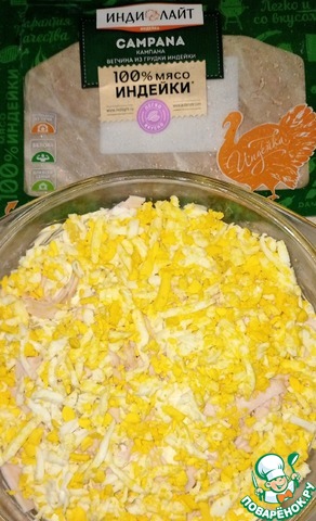 Рецепт «Сытный и ходовой салат с ветчиной»:
