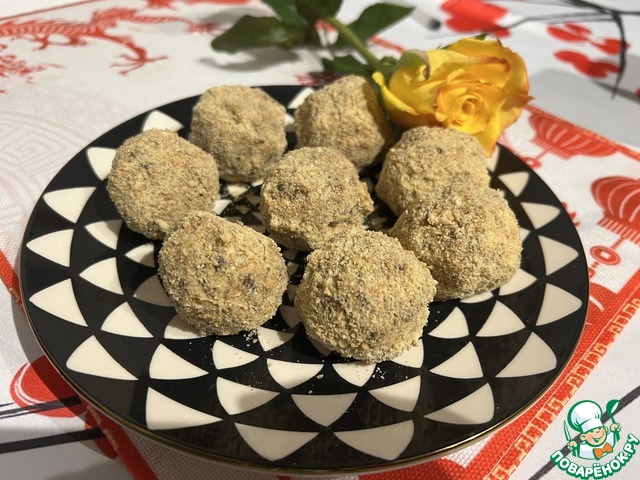 • Печенье перемолоть в крошку и обвалять в этой "посыпке" каждый шарик.