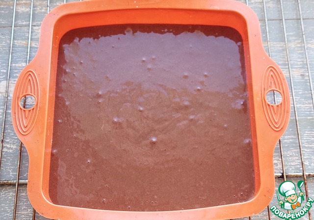 Перелить бисквит в форму для выпечки. Готовить в духовке, заранее разогретой до 180 гр., 25-30 мин. Готовность проверить с помощью деревянной шпажки.