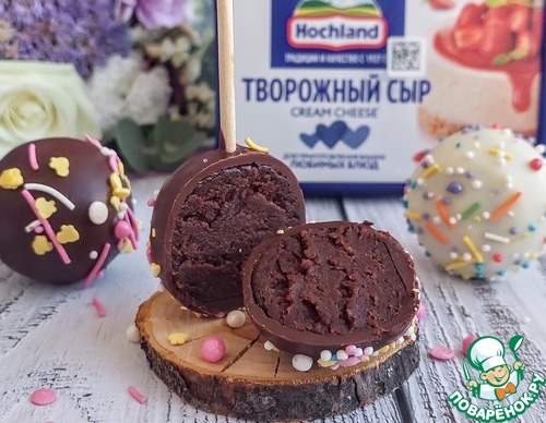 Предлагаю приготовить эти чудесные, яркие маленькие круглые пирожные на палочке из шоколадного бисквита и крема из вареной сгущёнки и творожного сыра. На мой вкус очень удачное и вкусное сочетание. Угощайтесь!