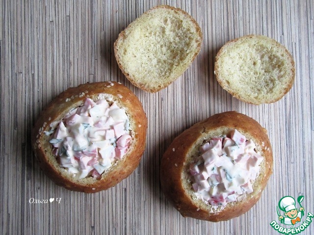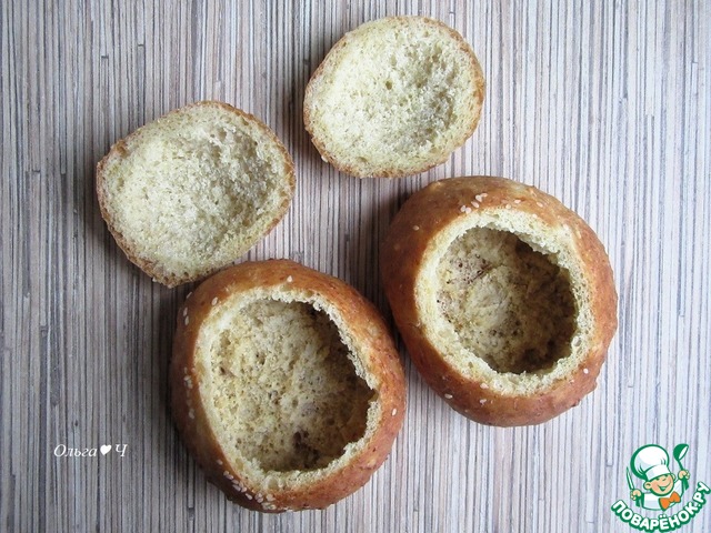 У булочек срежьте верхушку, аккуратно и максимально выньте мякоть.