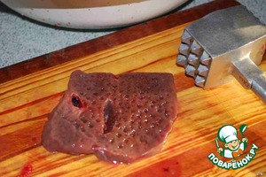 • Печень режем обязательно поперек волокон и слегка отбиваем.