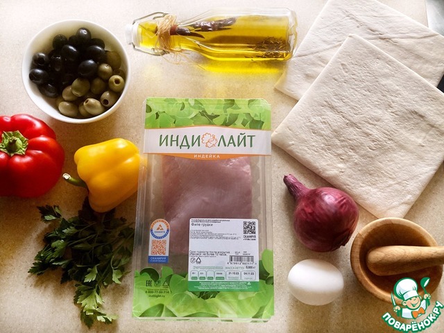 Ингредиенты для «Слоёные башмачки с индейкой и овощами»: