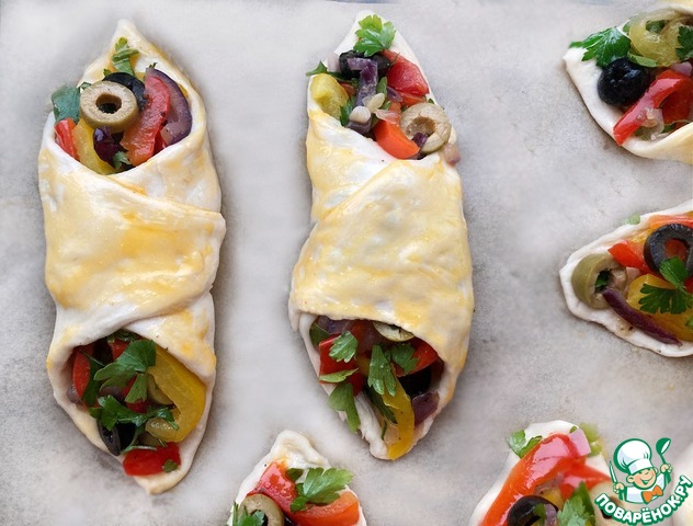 Рецепт «Слоёные башмачки с индейкой и овощами»: