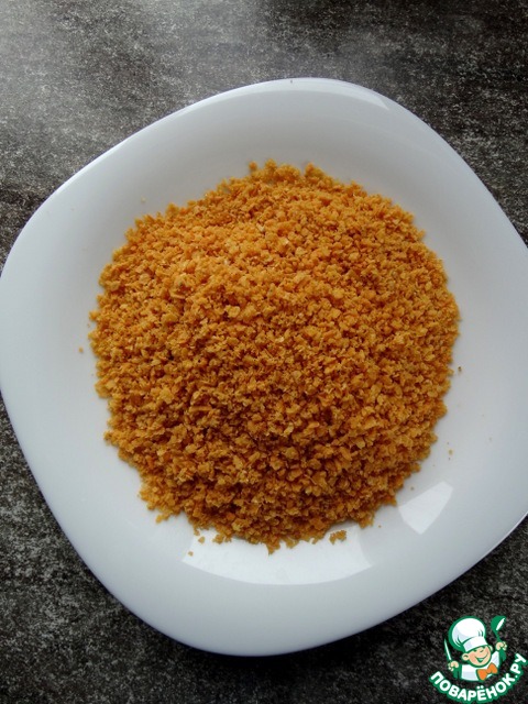 Чипсы измельчить в блендере до состояния крошки.