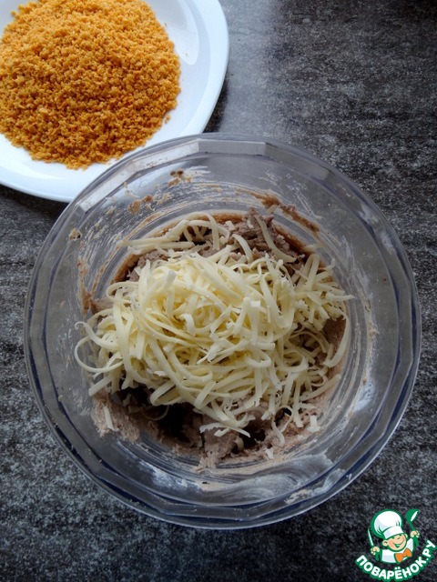 Натереть в паштет сыр. Перемешать.