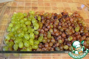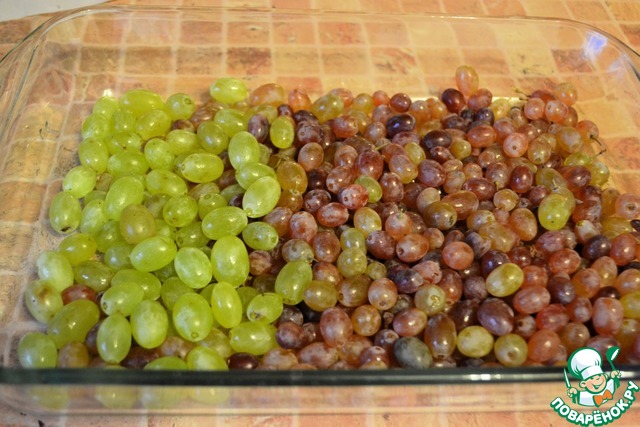 Виноград промыть, выложить в форму для выпечки. Запечь при 180° в течение 50 минут.
