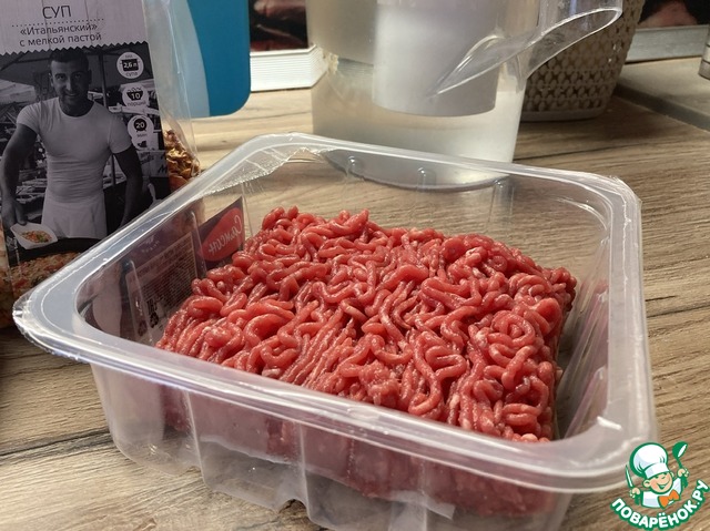 - Фарш мясной (Можно говяжий, домашний или куриный. У меня готовый говяжий.) — 400 г