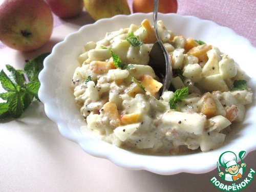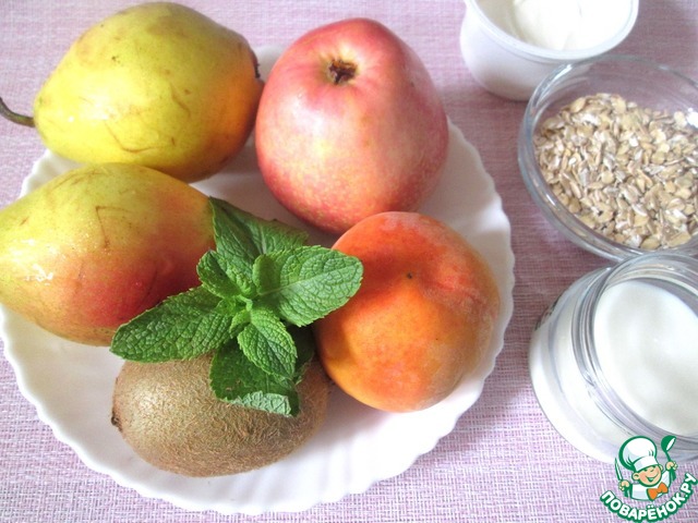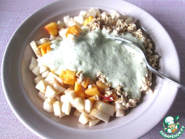 Это ещё один интересный салат из электронной кулинарной книги. Вкусное сочетание фруктов дополняют овсяные хлопья и аппетитная заправка.