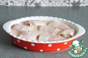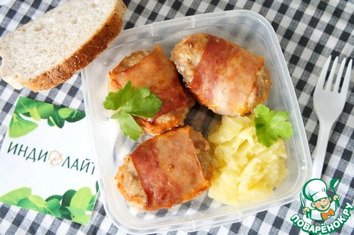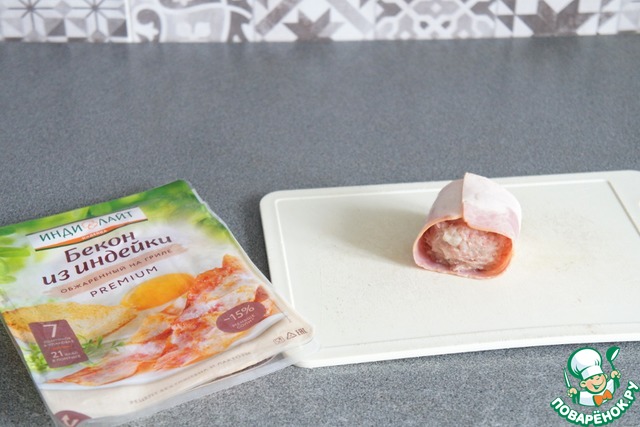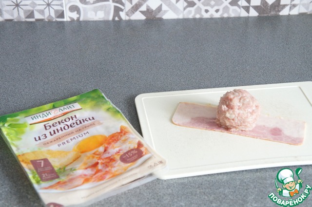 • На ломтик бекона выложить колобок из фарша.