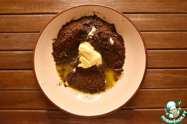 Шоколадную крошку соединяю с мягким сливочным маслом и перемешиваю что бы получилась пластичная масса.