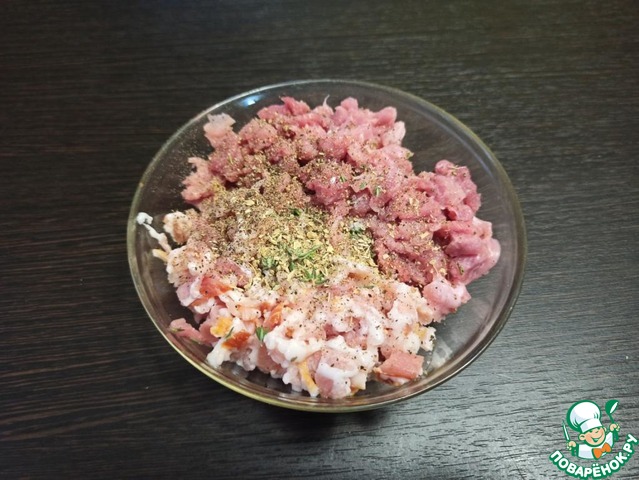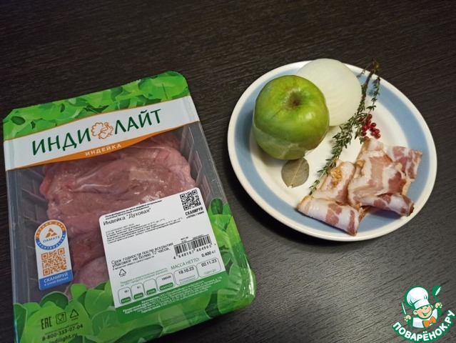Для рийета я взяла мясо индейки "Духовое", 3-4 слайса сырокопченого бекона и ароматные специи.