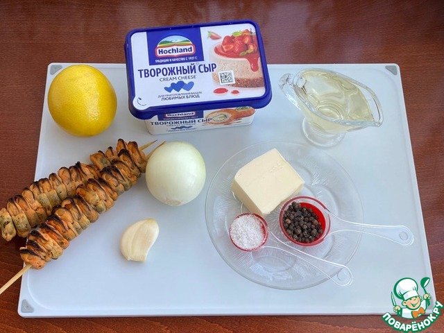 • Переложите с чашу блендера : творожный сыр ТМ "Хохланд, копченые мидии, обжаренный с чесноком лук. Добавьте соль и перец по вкусу, и лимонный сок.