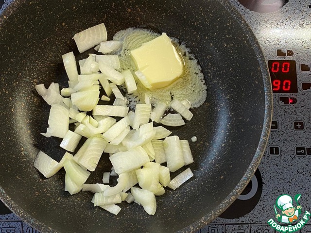Нашинкованную луковицу обжарьте до прозрачности на сливочном масле.
