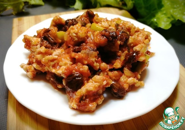 Очень замечательный вариант приготовления мясного фарша. Сочетание продуктов в рецепте дает изумительный вкус, ничего лишнего, готовится быстро, выглядит красиво. Приглашаю попробовать.