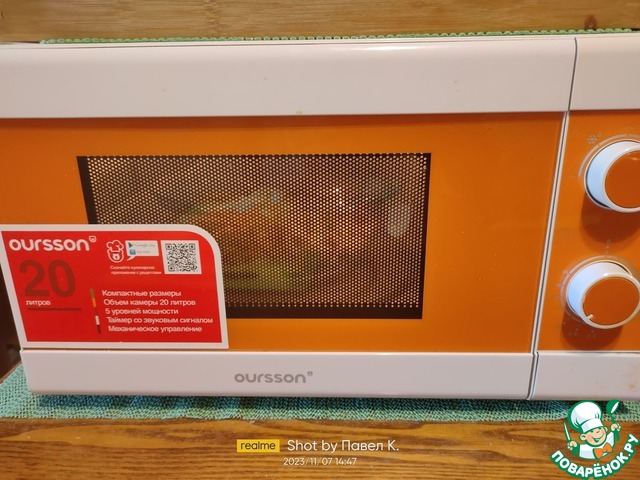 Включаем печь на максимальной мощности (у меня 700 Вт) на 15 минут.
