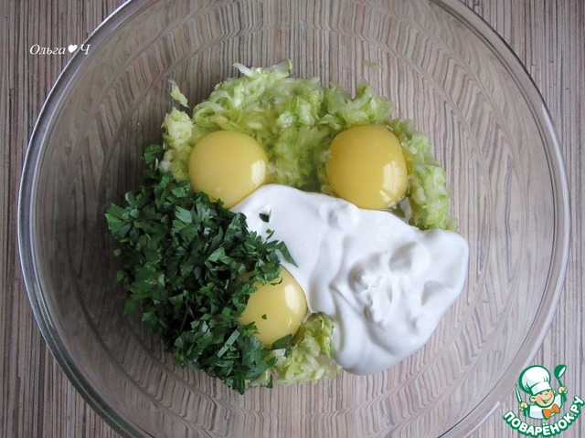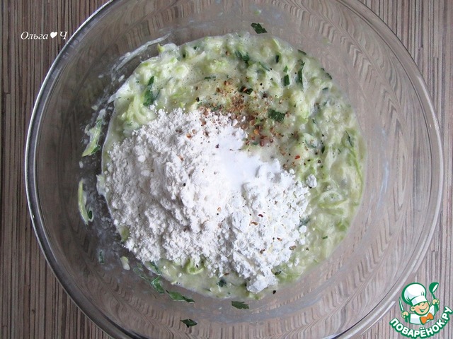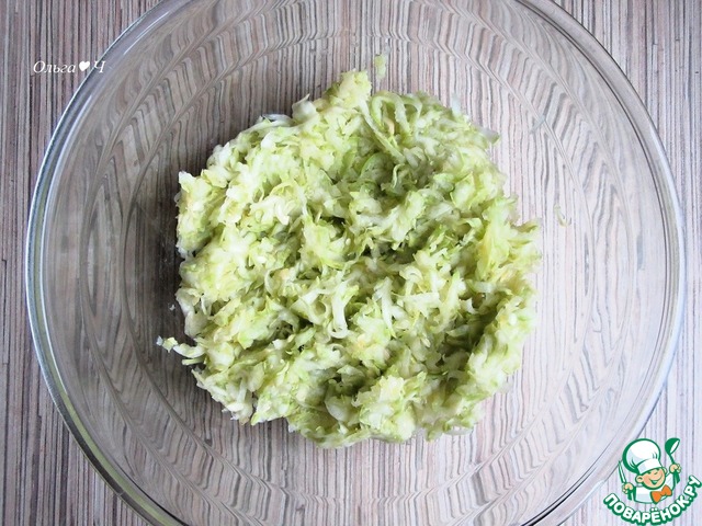 Кабачки натрите на терке, присыпьте солью, перемешайте, оставьте на 5-10 минут. Затем отожмите от лишнего сока.