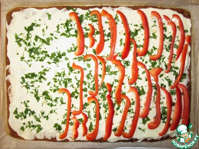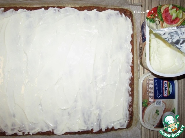 Затем смажьте плавленым сыром.