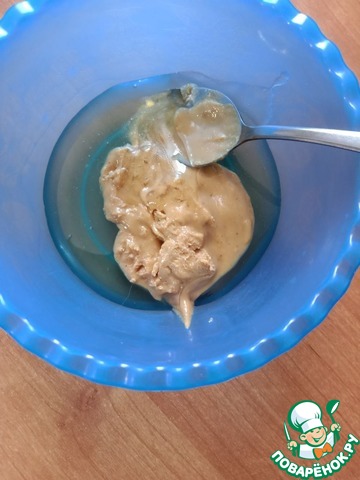 Если у вас мед густой, разогрейте его, - смешать мед и арахисовую пасту -