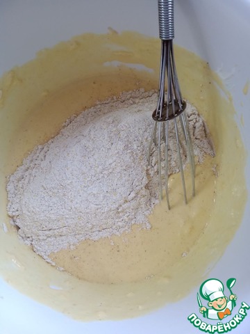 Хорошо перемешать сухие ингредиенты и всыпать их к влажным