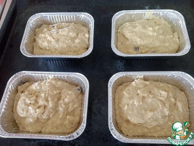 Тесто выложить в форму, - я пекла в порционных одноразовых формах из фольги, - вышло 4 формы объемом 250мл