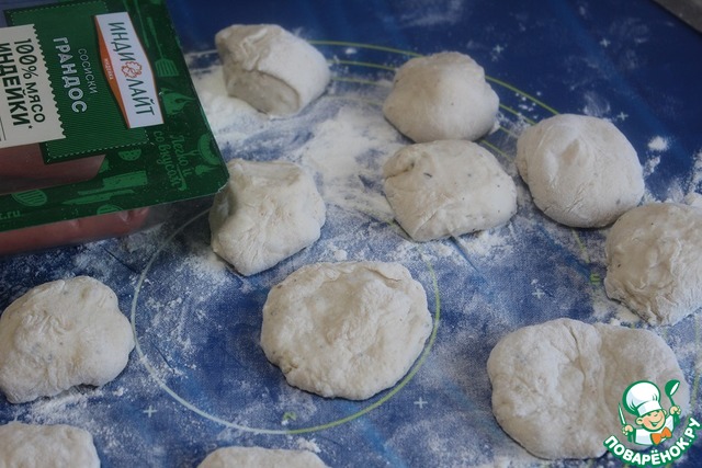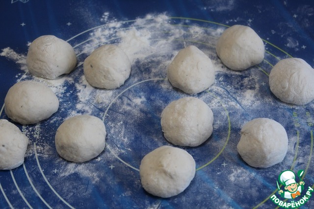 Собрать края лепешки к центру, хорошо залепить и скатать в руках шарик.