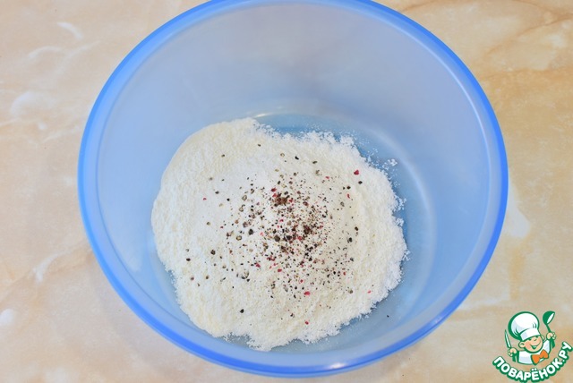 В другую чашу насыпьте муку. К ней тоже подсыпьте соль и специи.
