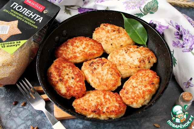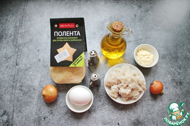 Ингредиенты для «Рыбные оладьи с полентой»: