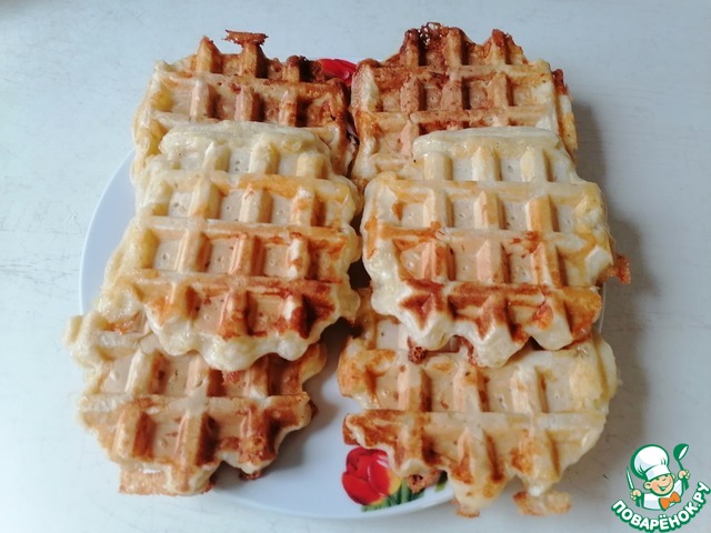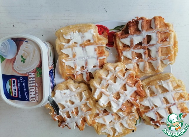Смазать получившиеся вафли тонким слоем плавленого сыра