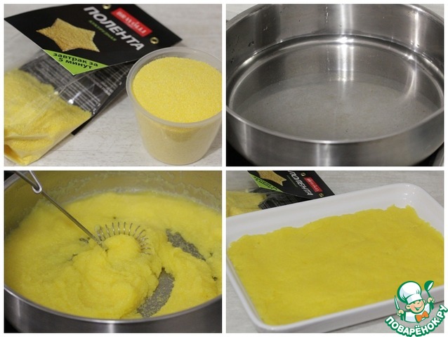 Приготовить поленту. У меня кукурузная полента ТМ Bravolli.