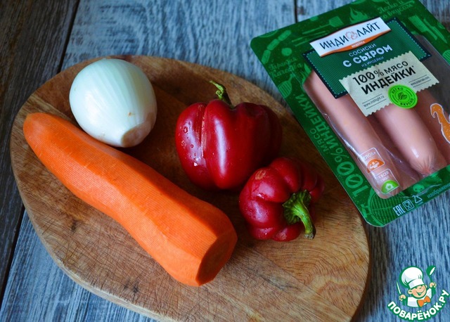Ингредиенты для «Разборный пирог с сосисками и овощами»:
