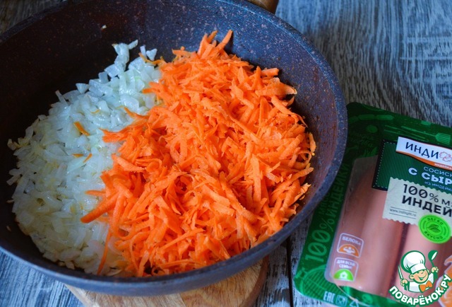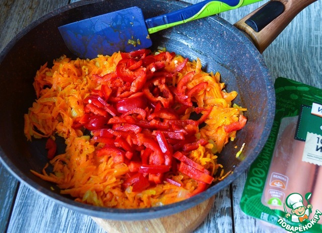 Рецепт «Разборный пирог с сосисками и овощами»: