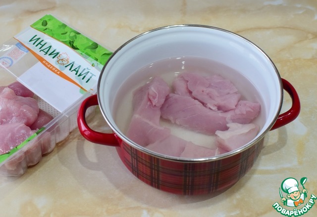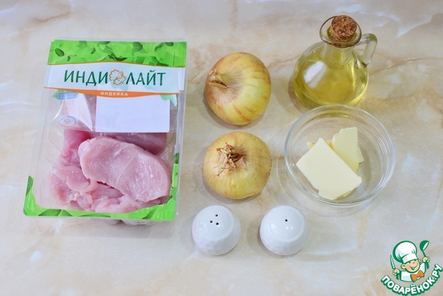 Для приготовления мясного паштета подготовьте необходимые ингредиенты. Можно взять любую часть индейки. Я буду готовить из мясных медальонов Индилайт.