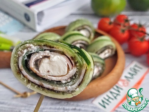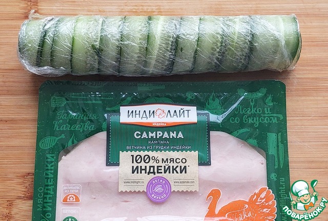 Рецепт «Огуречные рулетики с ветчиной и сыром»: