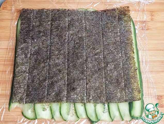 На огурцы положить лист нори.