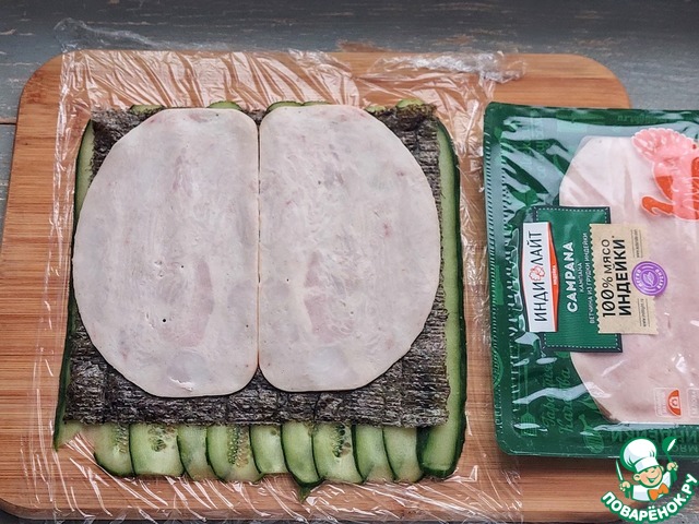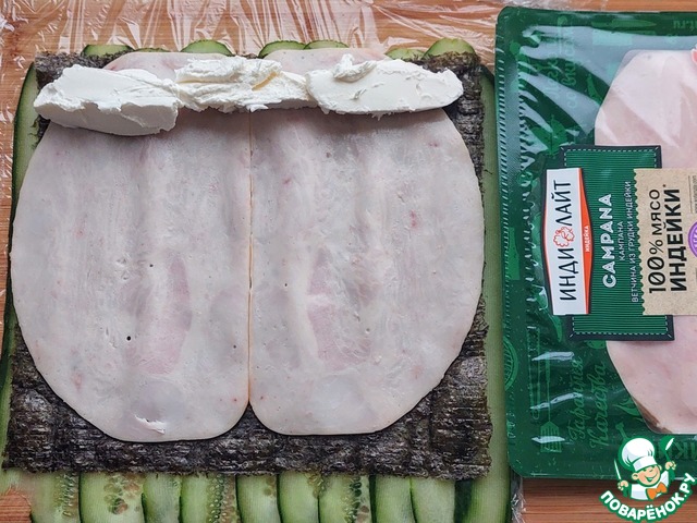 Поверх нори разложить ветчину ТМ Индилайт.