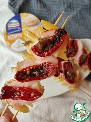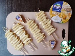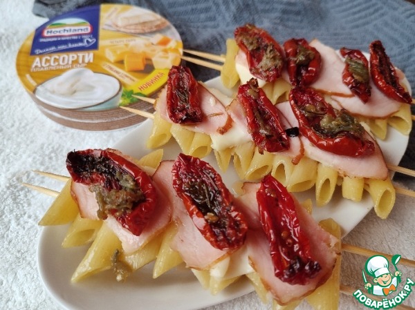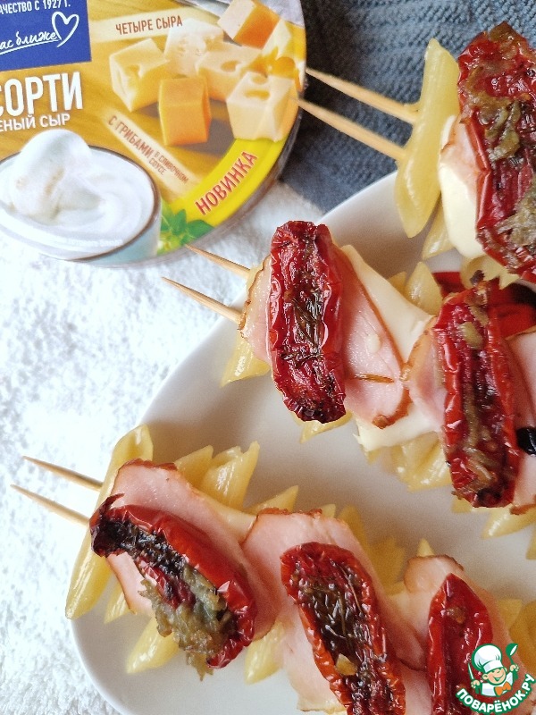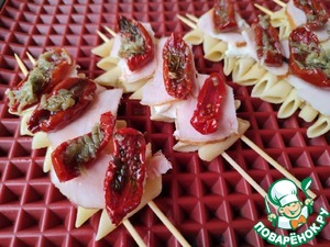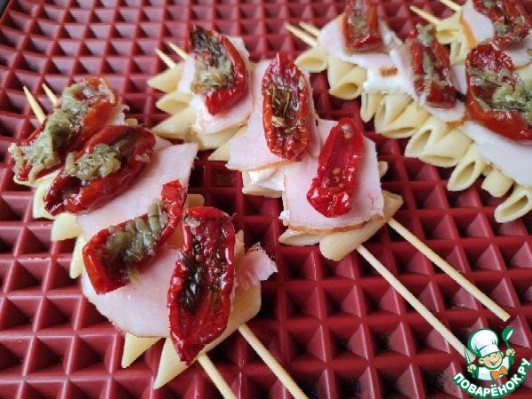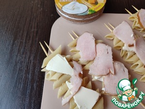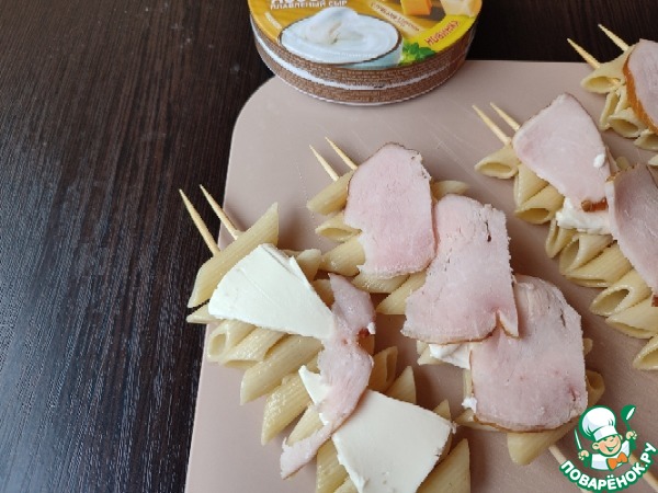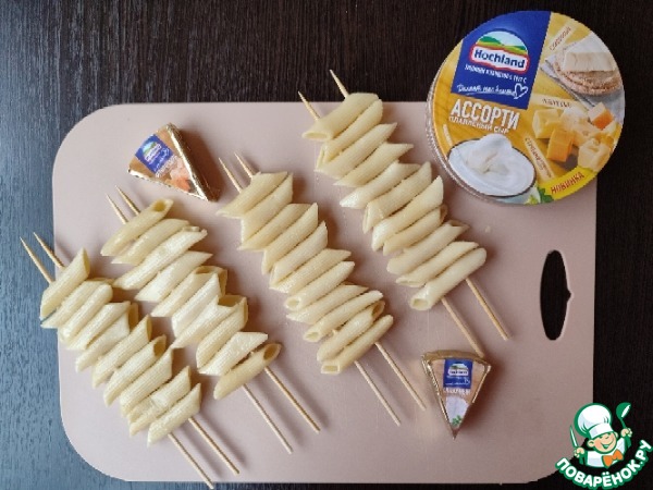 Если нет, отвариваем макароны и надеваем их на шпажки. Создаём основу для наших мини-пицц. -