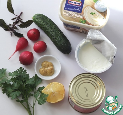 Ингредиенты для «Домашний риет с консервированной горбушей»: