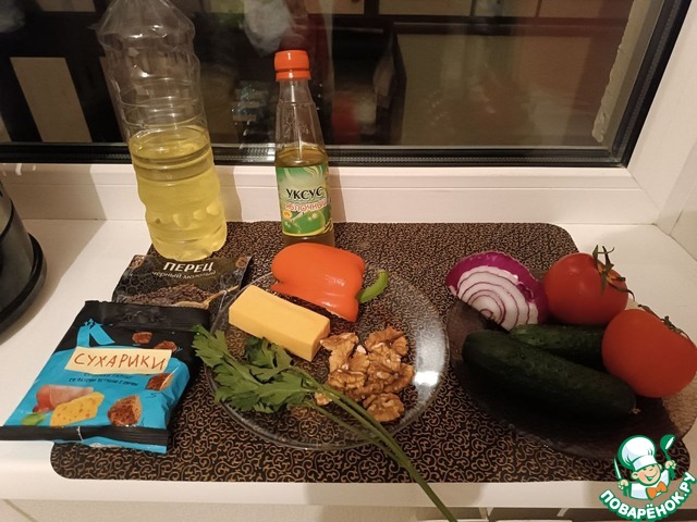 Ингредиенты для «Салат с помидорами и огурцами "Мяучка"»: