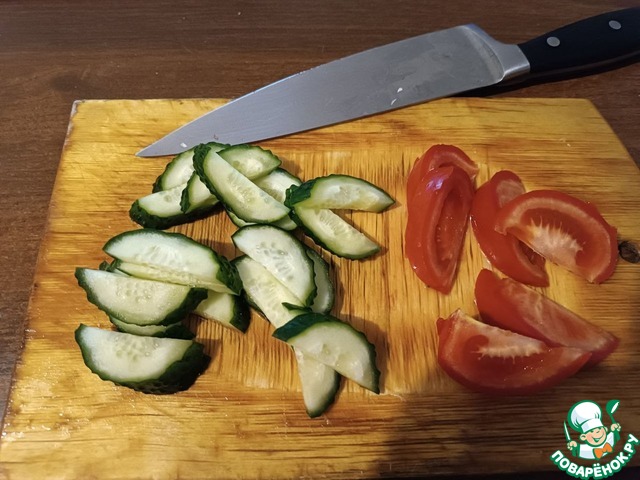 Рецепт «Салат с помидорами и огурцами "Мяучка"»: