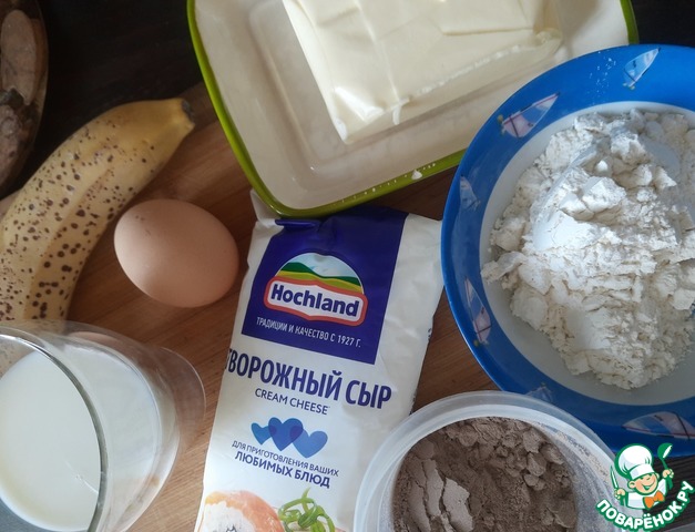 Очень вкусная выпечка! Сочетание банана и шоколада всегда выигрышно, а добавление творожного сыра ТМ Hochland очень облагораживает вкус и текстуру теста
