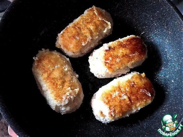 Наливаем масло на сковороду, греем и выкладываем котлеты. Жарим до готовности, переворачивая котлеты с одной стороны на другую и с боку на бок. Жарьте на свой вкус. Я обжаривала котлеты для себя под крышкой и на минимальном огне, не сильно зажаривая. Это быстро.