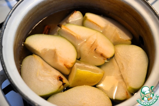 Добавить груши. Варить после закипания на среднем огне 5 минут. -